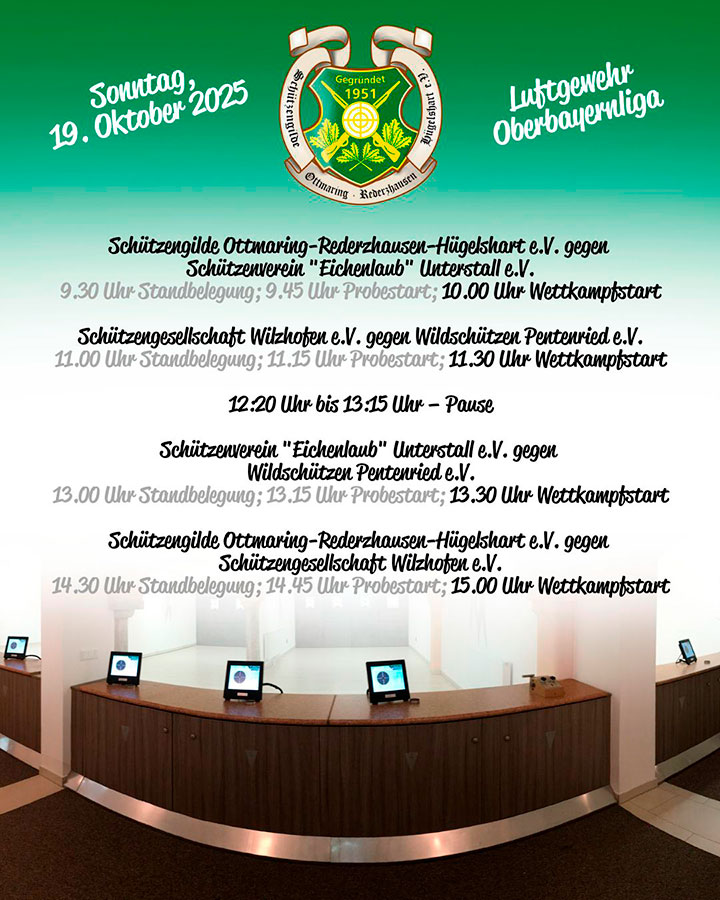 Die erste Runde der Luftgewehr Oberbayernliga (Saison 2025/2026) startete am Sonntag, 19. Oktober 2025 in Ottmaring.Vielen Dank allen fleißigen Helfern...